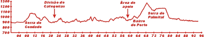 Gráfico 01 - Categoria Pró Altitude Máxima = 1263 m Altitude Mínima = 875 m Total de subidas = 2063 m