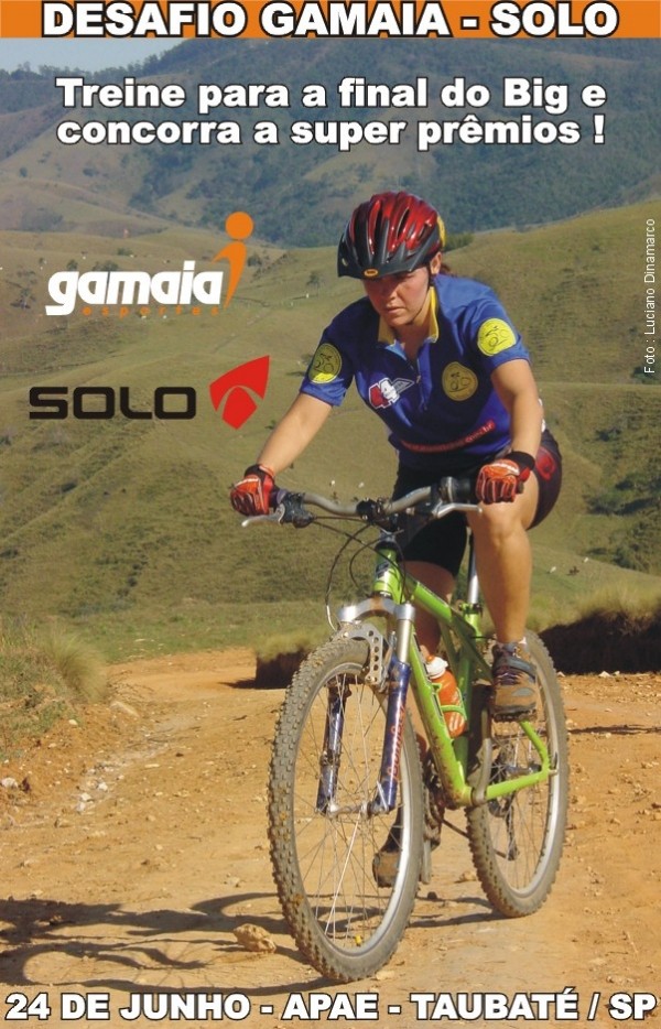 A Gamaia, 1a megaloja de esportes do Vale do Paraíba e Litoral Norte em parceria com a Solo, promovem este super desafio para você treinar e se preparar para a grande final do BIGBIKER CUP 2007. Será uma ótima oportunidade para simular a competição, ou simplesmente curtir uma pedalada com os amigos sem compromisso pelo circuito da categoria Sport em Taubaté / SP.