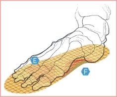 Ressalto na região do metatarso e Suporte longitudinal do arco do pé